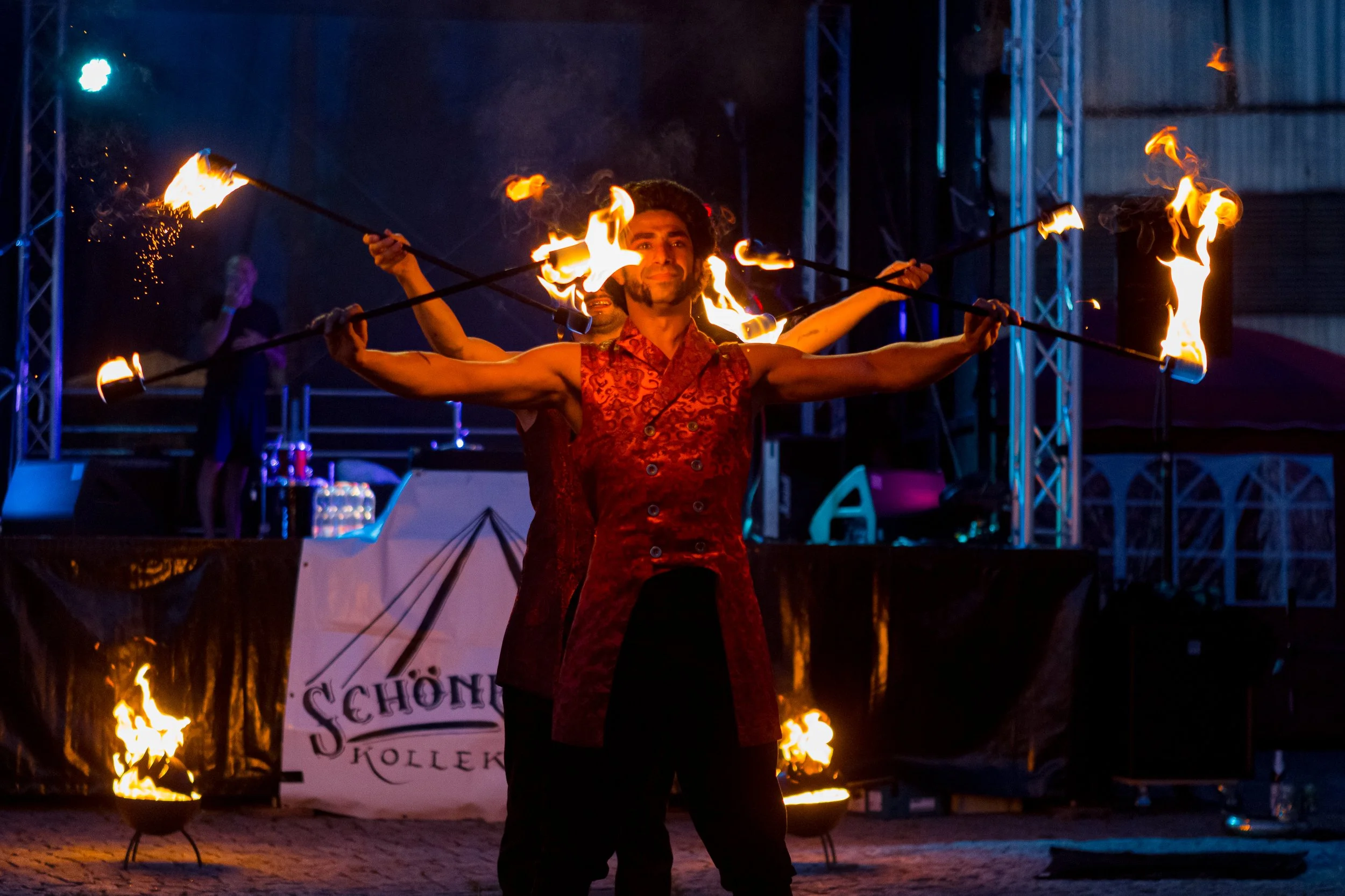 Atemberaubende Feuerperformance mit Akrobatik, Choreografie und Pyroeffekten – für Events, Hochzeiten & Firmenfeiern in Berlin, Hamburg und ganz Deutschland.